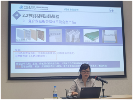 举办方邀请了国家建筑节能质量监督检验中心的六位专家分别从《建筑节能建筑围护结构发展趋势解析》《《建筑节能工程质量验收标准》GB50411-2019标准重点部分解读》《《岩棉薄抹灰外墙外保温系统工程技术标准》 JGJ/T480-2019标准重点部分解读》《外保温系统及组成材料关键指标及检测方法解析》《建筑节能检测设备及相关数据分析》《 近零能耗建筑关键技术及相关标准》等方面作了讲解和分析。并组织学员实地参观了中国建筑科学研究院建筑环境与能源研究院的近零能耗示范楼的各项节能措施。