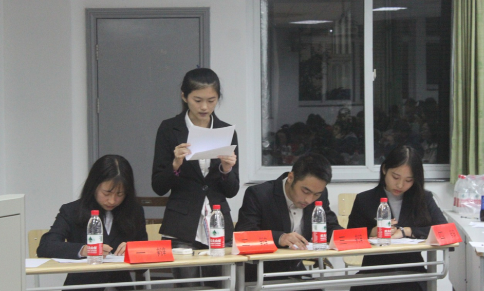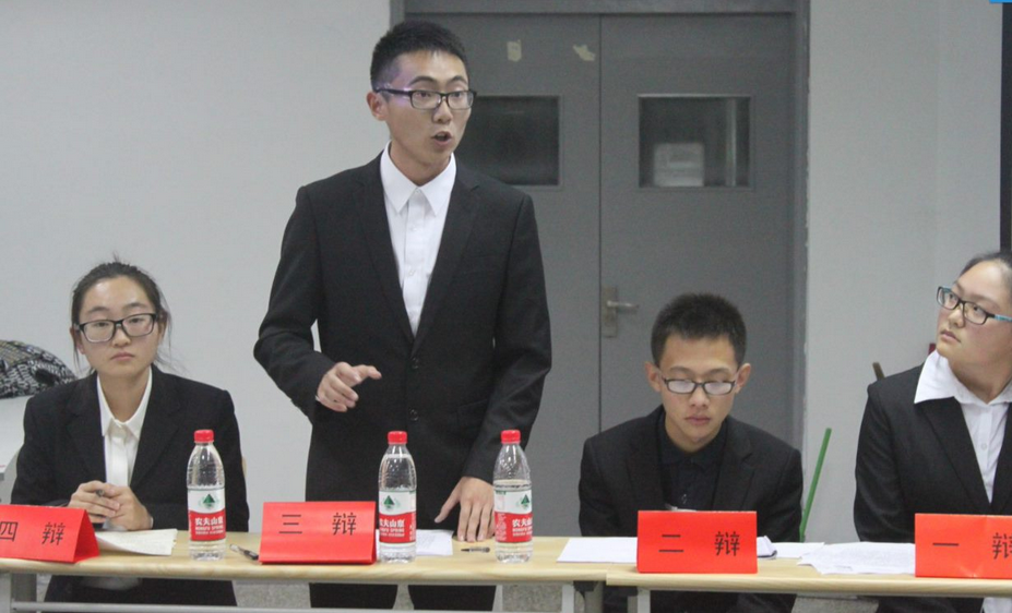 辩论赛半决赛,此次辩论赛有幸邀请到外国语学院辩论队队长胡兴鹏,商学院辩论队队长李雪,建工学院辩论队王兴鹏作为本次比赛的评委嘉宾。