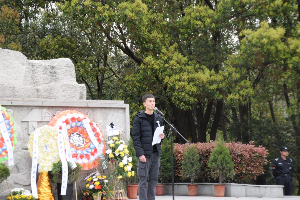 大一学生陆宏亮,代表全体学生表达了对革命先烈们的敬仰之情,表明了传承革命精神、报效祖国的决心。