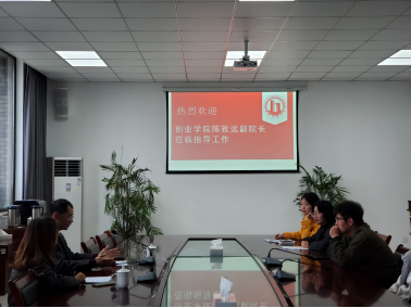 召开第九届“互联网+”院级赛事暨评审指导会,引导广大师生秉持创新精神开启创业大门。创业学院副院长陈志远莅临现场指导工作,院党委副书记杨智慧出席活动。
