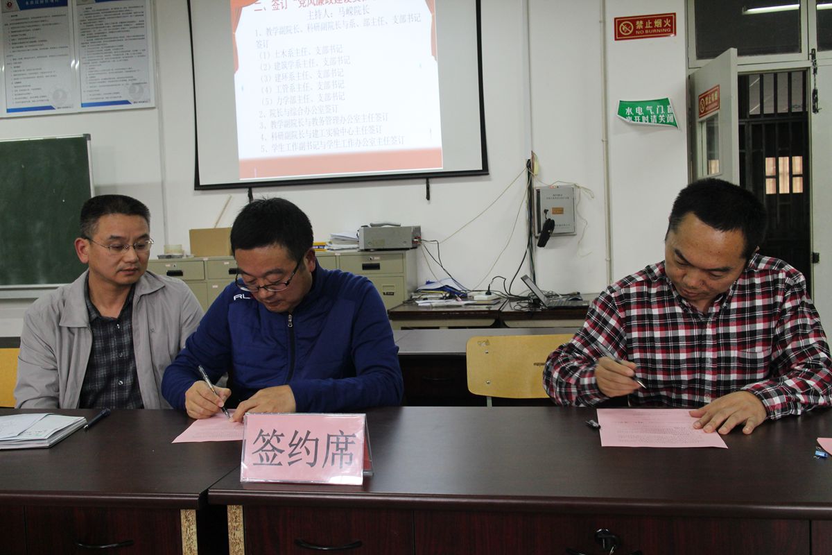 党风廉政(反腐倡廉)建设责任书签订仪式和“平安校园”建设目标管理责任书签订仪式在学院建筑实验中心205会议室举行。