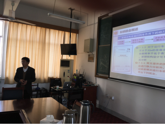 的刘德军博士主讲,活动报告题目《车桥耦合振动理论与工程应用》带来诸多前沿新技术的介绍。本次讲座主要从四个部分展开,第一部分为车桥耦合概况,主要介绍了车桥耦合的特点及研究内容;第二部分为风-列车-轨道-桥梁系统研究背景,介绍了风对桥梁、列车的影响,研究的必要性和意义;第三部分为风-列车-轨道-桥梁系统耦合振动理论,介绍了系统动力学模型,各子系统间的动力相互作用,系统运动方程的数值解法及程序编制;第四部分为工程应用,结合南京大胜关长江大桥、沪通长江大桥、五峰山长江大桥介绍了风车轨桥理论应用到大风天气下桥上行车安全性评价及运行准则制定的成果。
