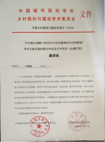 建筑学系主任宁碧波副教授,应邀参加由中国城市规划学会乡村规划与建设学术委员会以及中国建筑学会乡村建筑专业委员会主办的、由上海大学上海美术学院、浙江省永康市浙江省农业和农村工作办公室、浙江省永康市芝英镇联合承办的、在浙江省永康市芝英镇举行的“乡村振兴战略下的历史文化村落规划与空间营造”学术研讨会。同时本次会议也对由清华大学美术学院、浙江工业大学建工学院、浙江大学城市学院、嘉兴学院、上海大学上海美术学院组成的高校联合毕业设计作品进行了评优颁奖。应邀参加会议的有中国城市规划学会乡村规划与建设学术委员会代表、中国建筑学会建筑师分会代表以及联合毕业设计院校的专家学者及部分学生等。