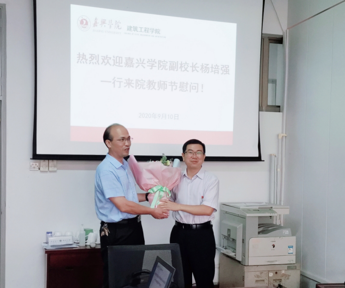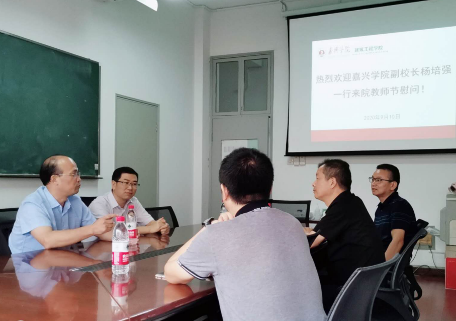 2020年9月10日上午,第36个教师节来临之际,副校长杨培强一行到建工学院慰问教师代表并开展交流。院长马嵘、副院长孙德发、黄殿武陪同慰问。