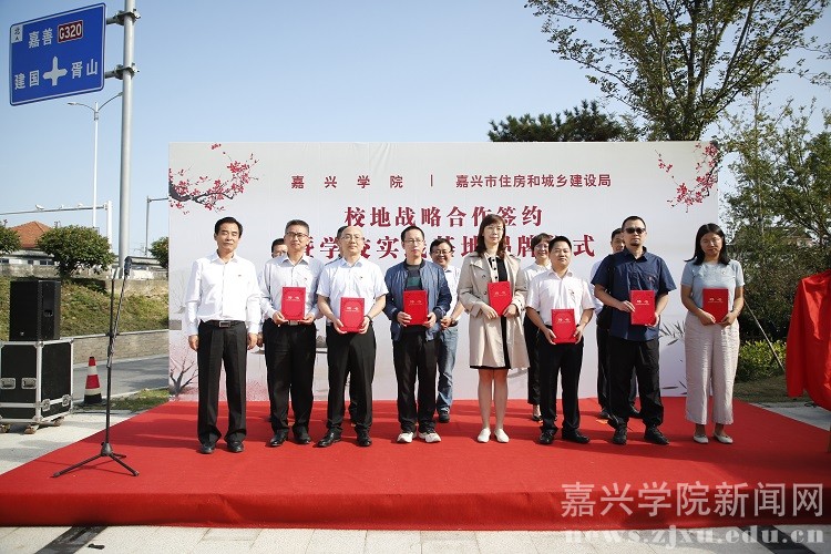 与嘉兴市住房和城乡建设局校地合作签约暨学校实践基地揭牌仪式在嘉兴市南湖区大桥镇胥山村举行。副校长胡俊云,院长马嵘,南湖区政府副区长张芳军,市建设局局长应志敏、党委副书记陈胜、副局长金洪良出席仪式。
