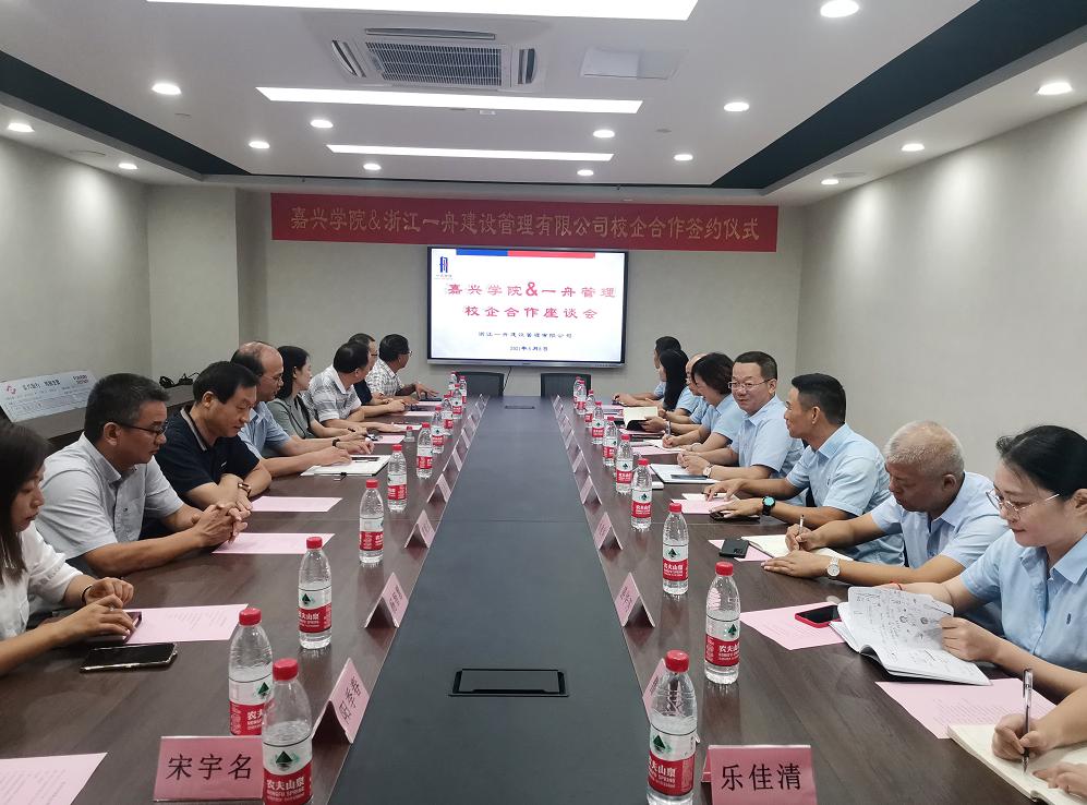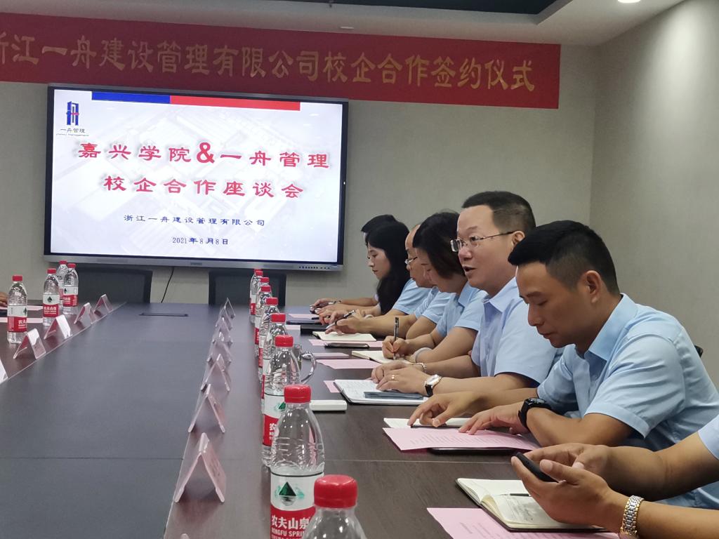院长王恩茂、党委书记姚民乐、副院长黄殿武、陈华、党委副书记杨智慧、各系主任、副主任等一行11人赴浙江一舟建设管理有限公司开展校企合作对接。浙江一舟建设管理有限公司董事长兼总经理殳耀忠、副总经理郭一名、唐晓芹等参加座谈会。