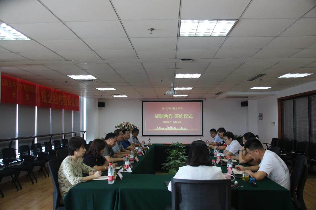 党政领导、建环系主任一行7人赴浙江腾圣环境有限公司开展校企合作对接。浙江腾圣环境有限公司董事长薛杰、总经理刘霞等参加座谈会。