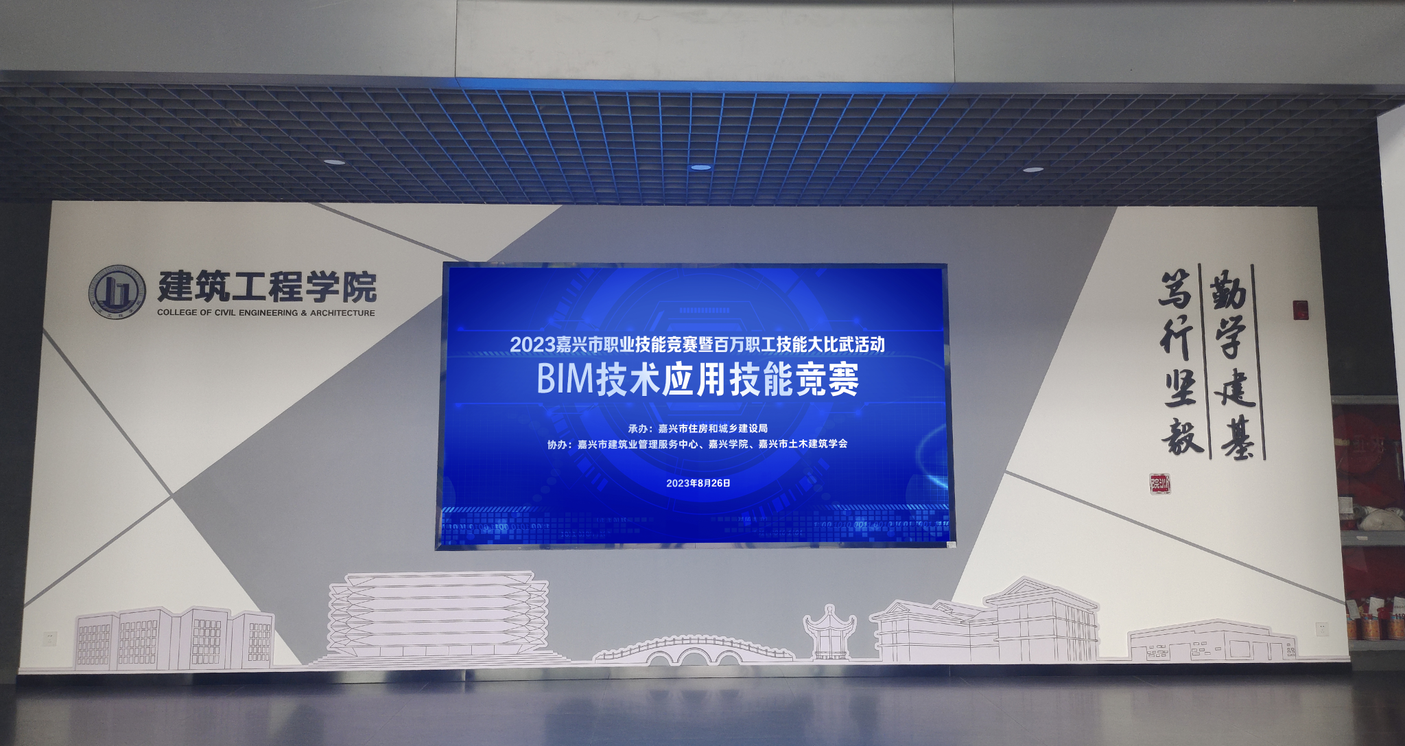 成功举行。竞赛期间,嘉兴市住房和城乡建设局、嘉兴市人力资源和社会保障局、嘉兴市土木建筑学会、嘉兴学院麻豆tv