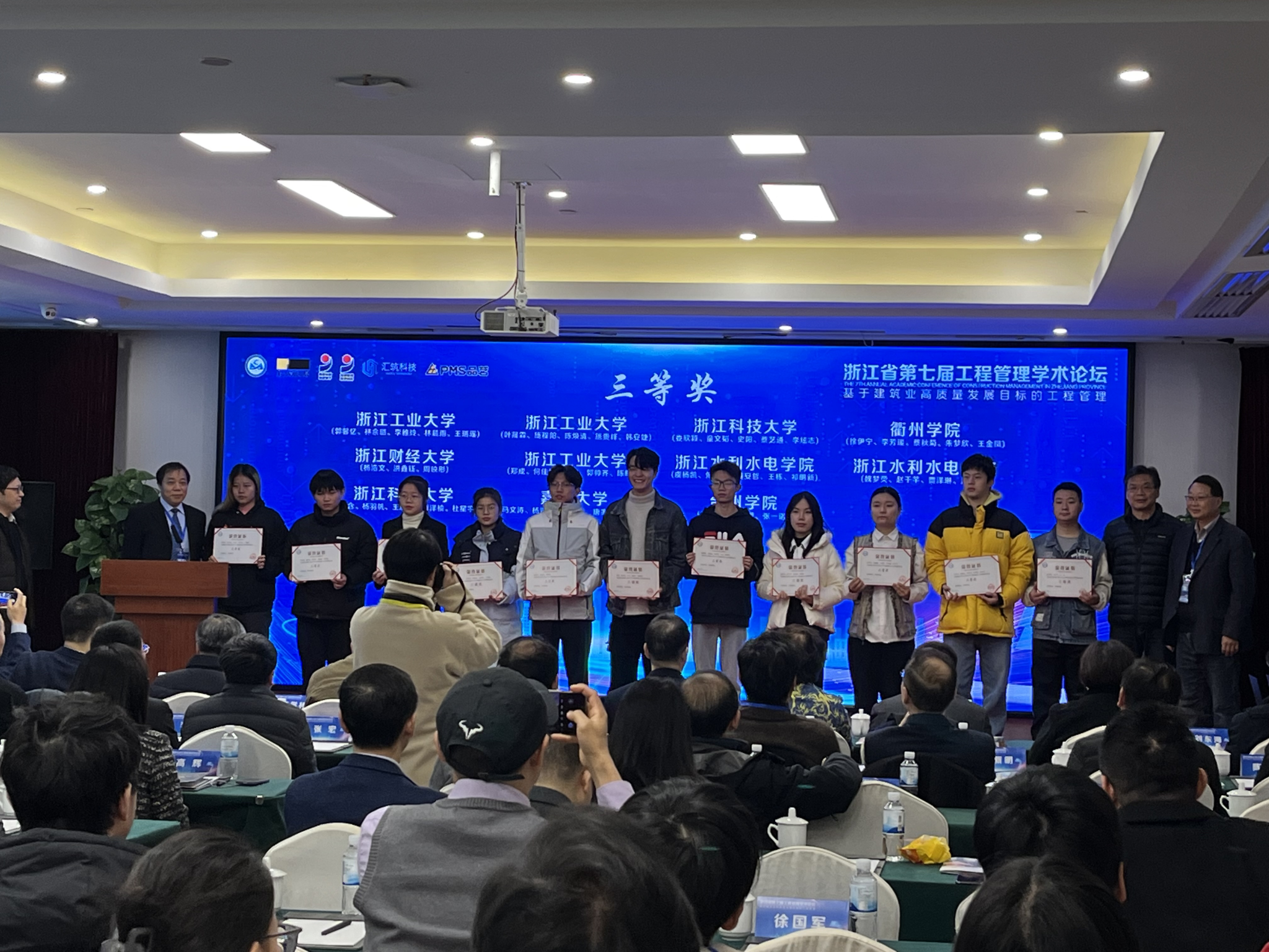 同时,本次论坛还举行了第六届浙江省大学生智能建造与管理创新竞赛颁奖典礼。工程管理系主任宋宇名老师带领的团队获得了三等奖的好成绩。