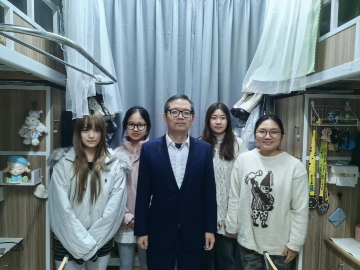 走访过程中,周宏伟副校长对寝室环境细致查看,与同学们亲切交谈,了解大家学习和生活情况,围绕学业规划,给与针对性的学习指导,鼓励大家要夯实专业基础,珍惜大学时光,勇于挑战自我。同时,他为同学们介绍了我校出国留学项目,鼓励大家条件允许的情况下,提前做好出国准备,积极参加短期出国游学项目,拓宽国际视野。