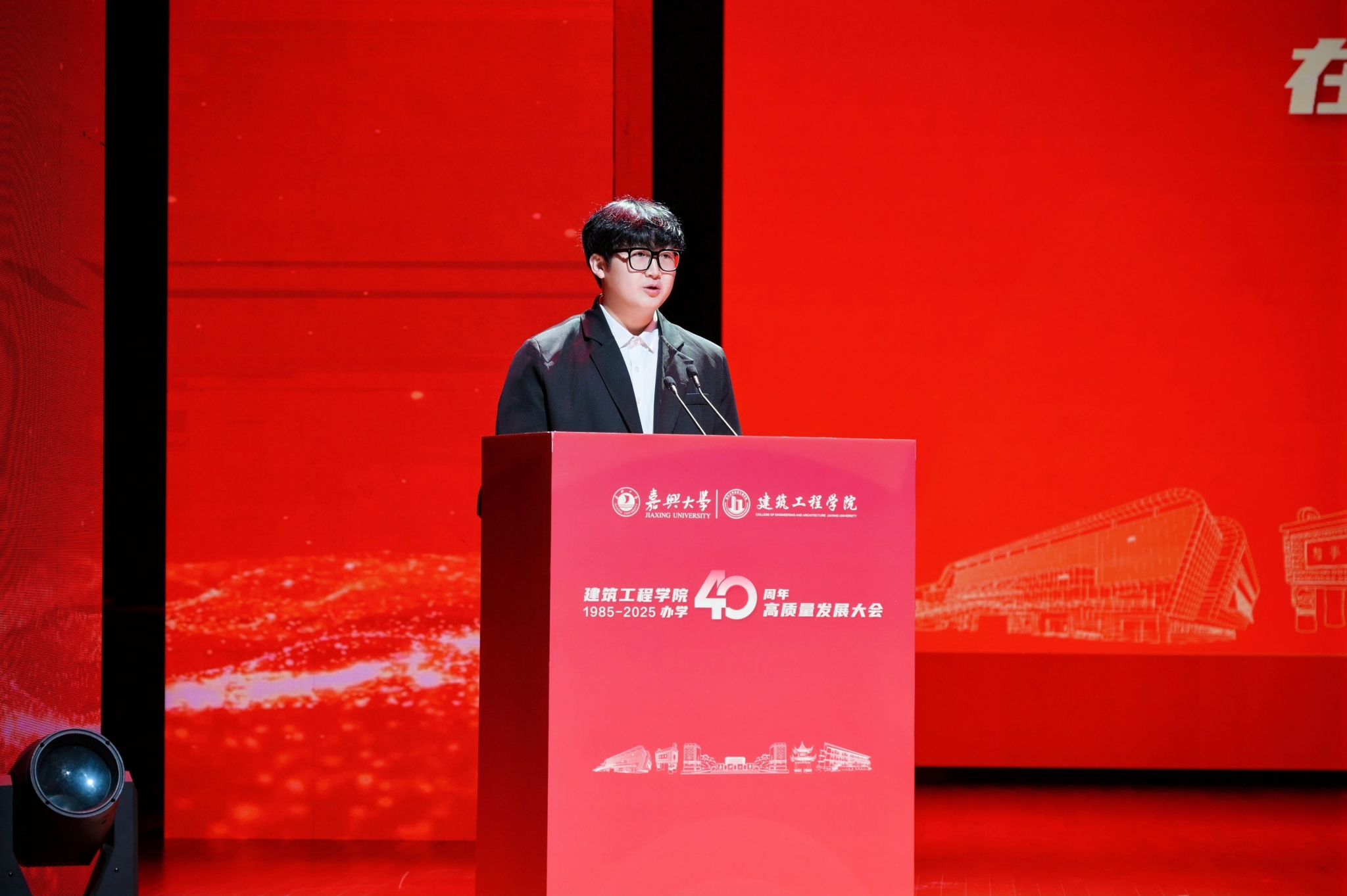 老教师代表马嵘老师讲述了他与建工的故事。他感慨道,当年的嘉兴高专土木系只有“房屋建筑工程”一个专科专业,100名左右在校学生。四十年转瞬即逝,如今已发展成为聚焦土木工程材料与结构、智能建造与工程管理、岩土工程、建筑节能技术及设计等研究方向,拥有“4本科专业 + 1硕士点”,在校生达1000多人的学院。他把嘉兴高专土木系比作绿皮火车,经过四十年的发展,经历了嘉兴学院机电与麻豆tv