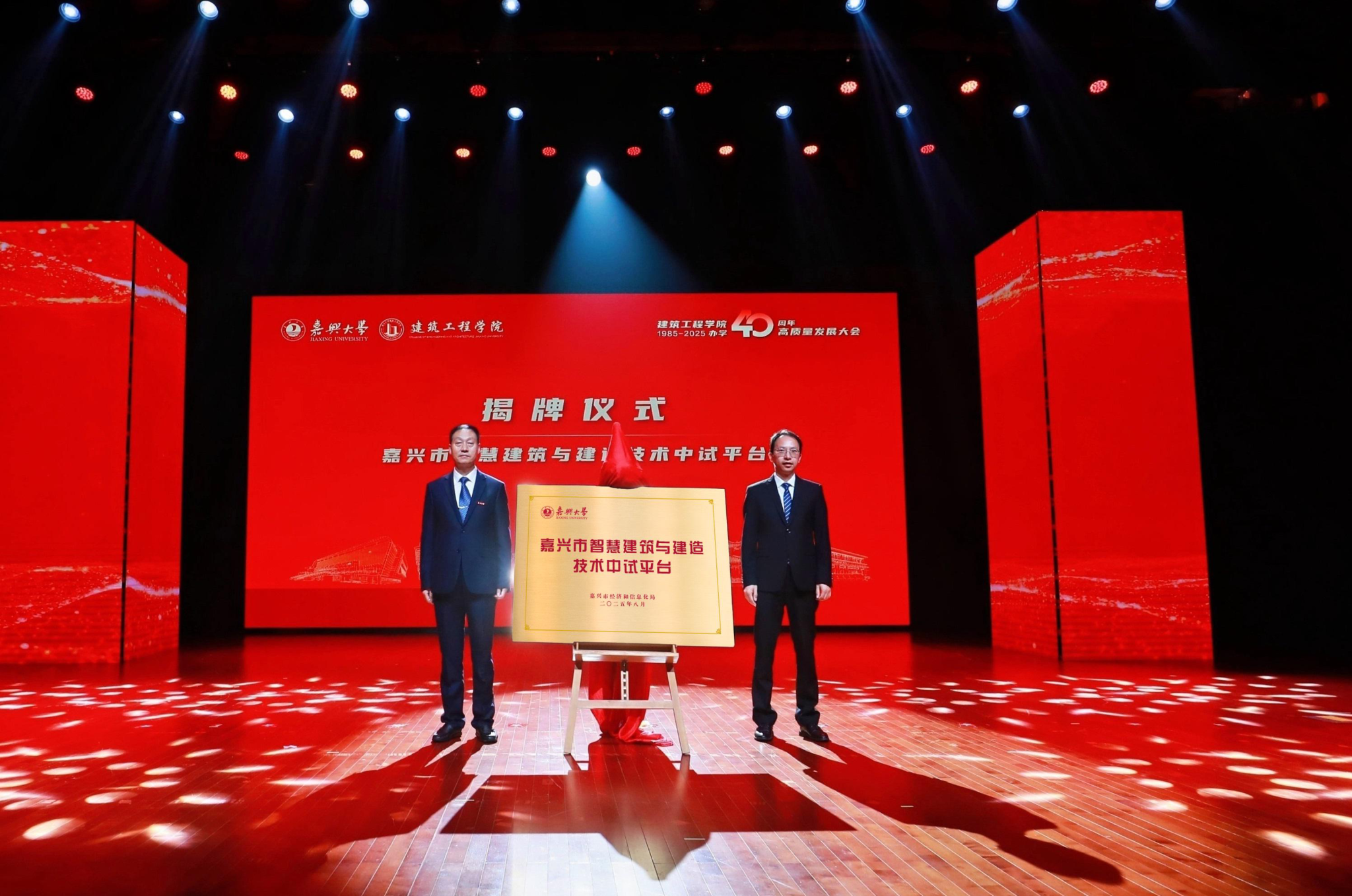 科技处处长张景军和院长王恩茂共同为“嘉兴市智慧建筑与建造技术中试平台”正式揭牌,标志着学院在服务区域经济社会发展方面迈出重要一步。