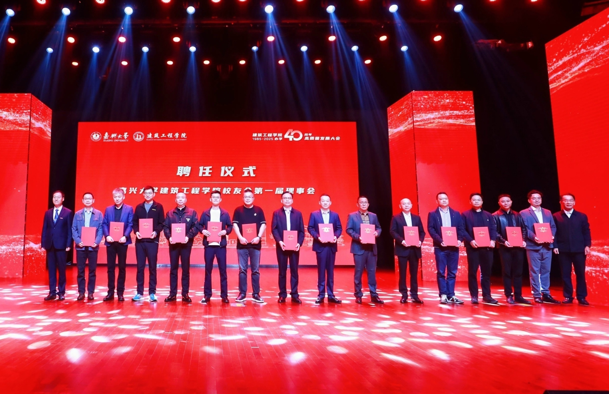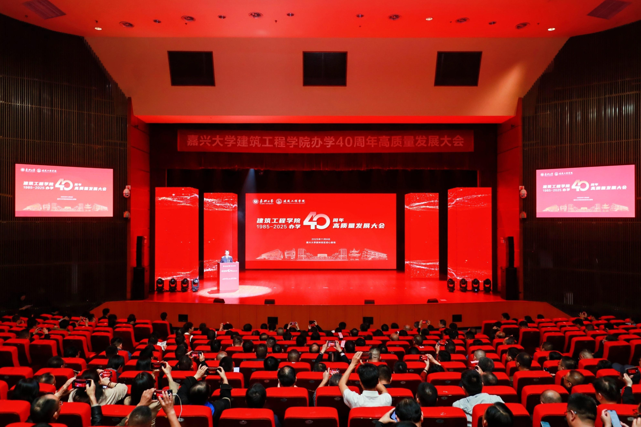 学院党建共同体单位代表、校企合作企业代表,嘉兴市建筑业协会、勘察设计协会、监理协会、造价协会、消防协会、装饰协会、绿建协会、土木建筑学会代表,学院老领导、老同志,社会各界朋友,学校职能部门负责人代表,曾在学院工作的同事和校友代表,以及师生代表等800余人齐聚一堂,共襄盛会,共同见证这一重要时刻。