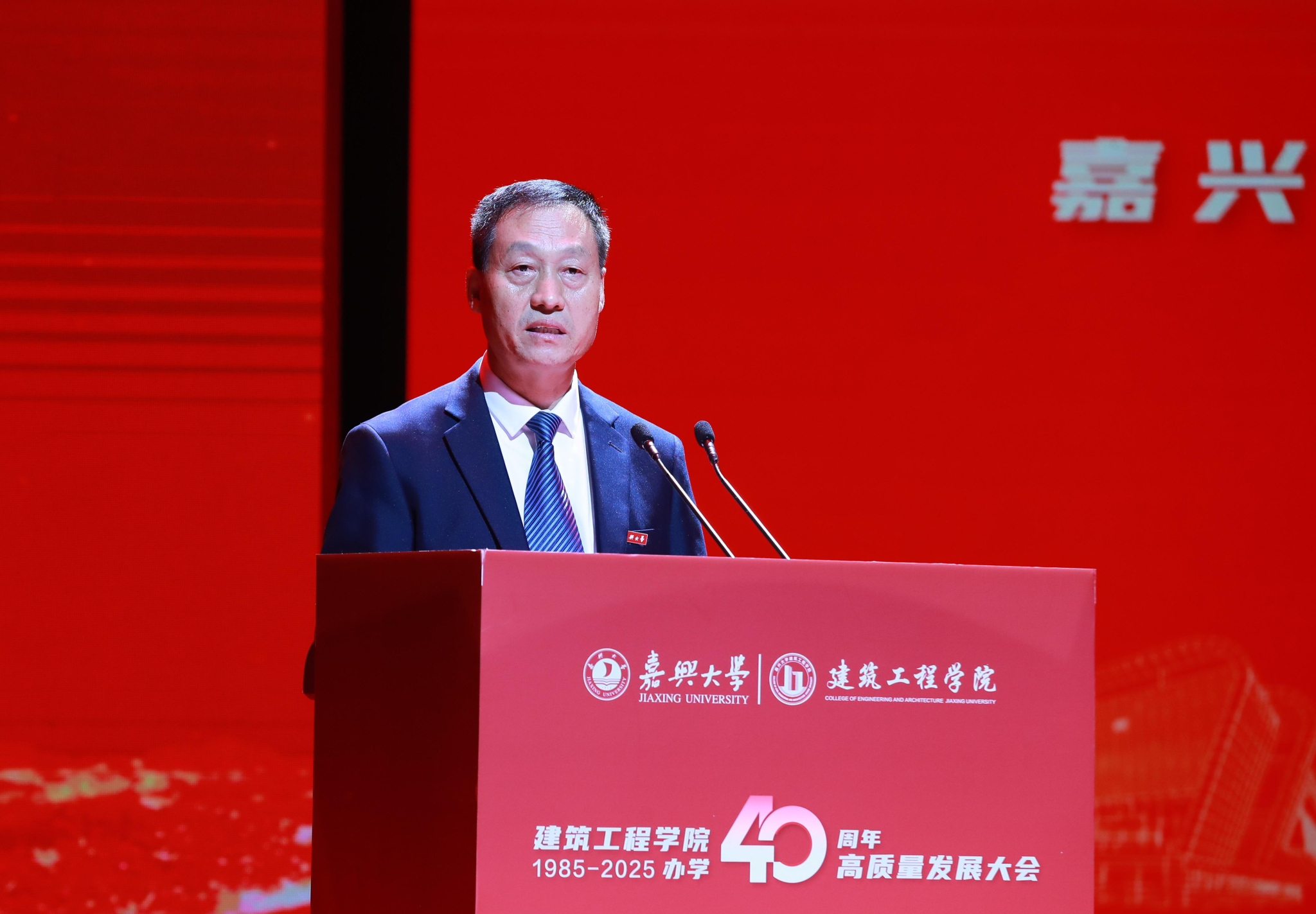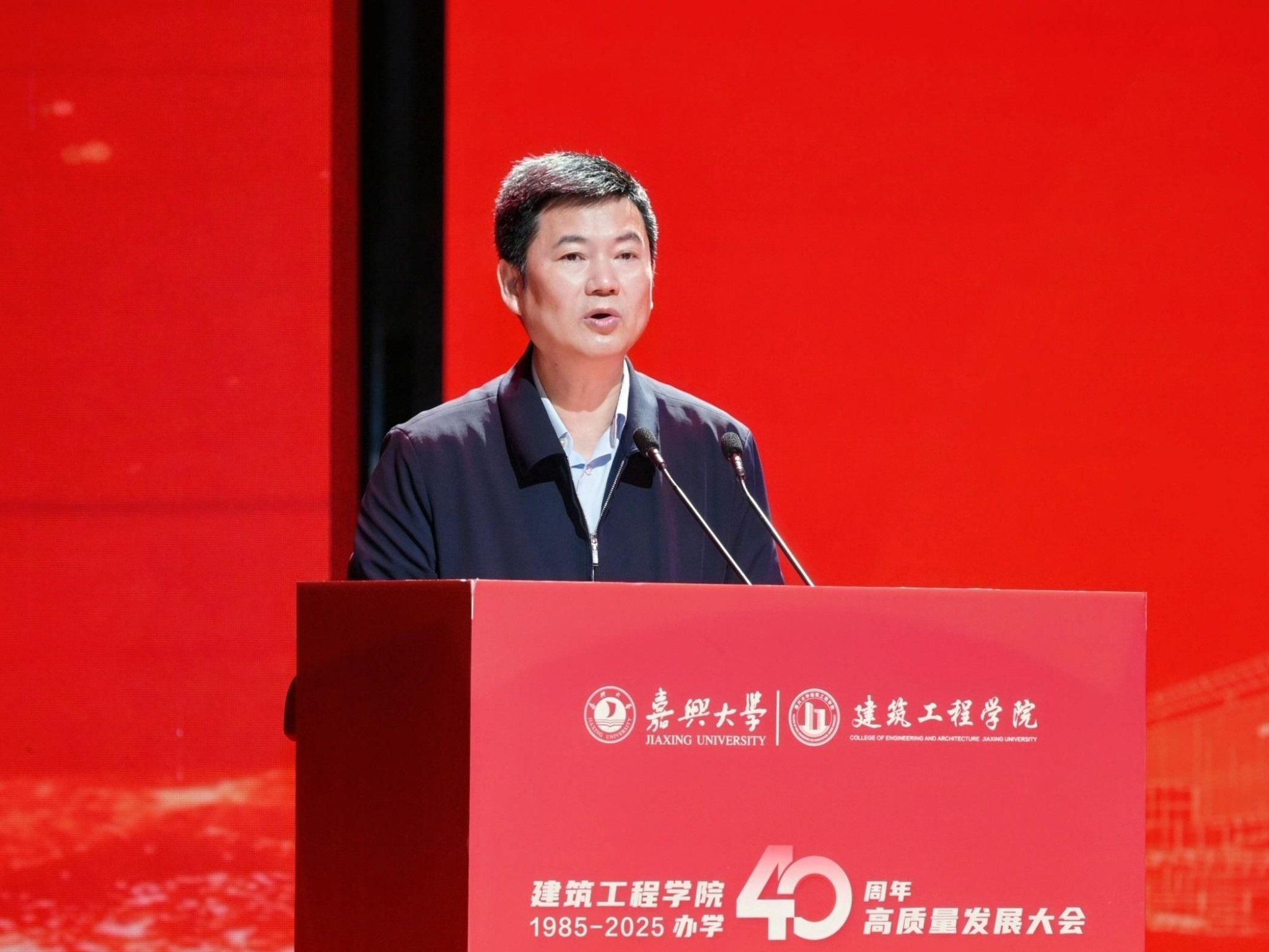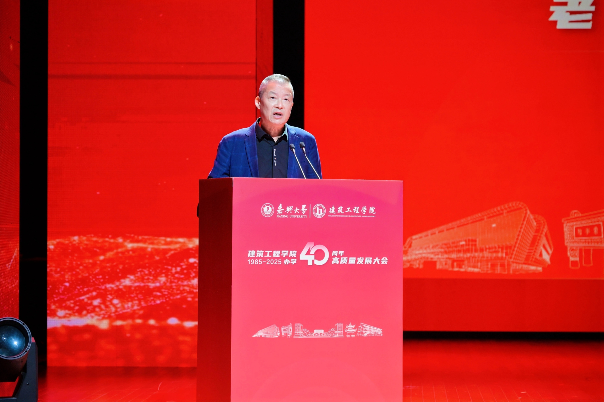 王恩茂院长致辞中回顾了学院40年来一代又一代“建工人” 的奋斗历程,展望了未来发展蓝图。40年来,学院始终牢记为党育人、为国育才使命;始终坚持立足嘉兴、服务浙江、联系行业、面向全球的办学理念,持续深化学科专业一体化发展;始终坚持政产学研深度融合,共建教研平台,共享人才资源,共育创新动能,不断增强服务经济社会的能力。他表示,学院坚持以习近平新时代中国特色社会主义思想为指引,做“好房子建设”的卓越践行者,“智能建造”的先锋引领者、“城市更新”的忠诚守卫者,努力将学院建成为特色鲜明、国内知名、有一定国际影响力的高水平学院。