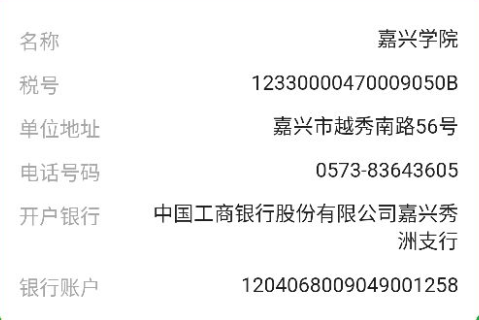1.嘉兴学院银行开户信息:
