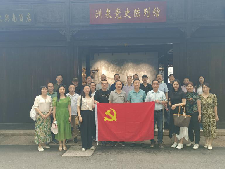 党委书记姚民乐率学院30余名党员教师赴桐乡洲泉镇开展“循迹溯源学思想促践行”主题党日活动。