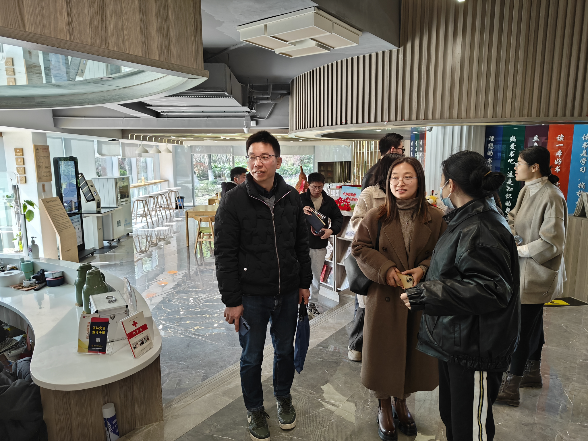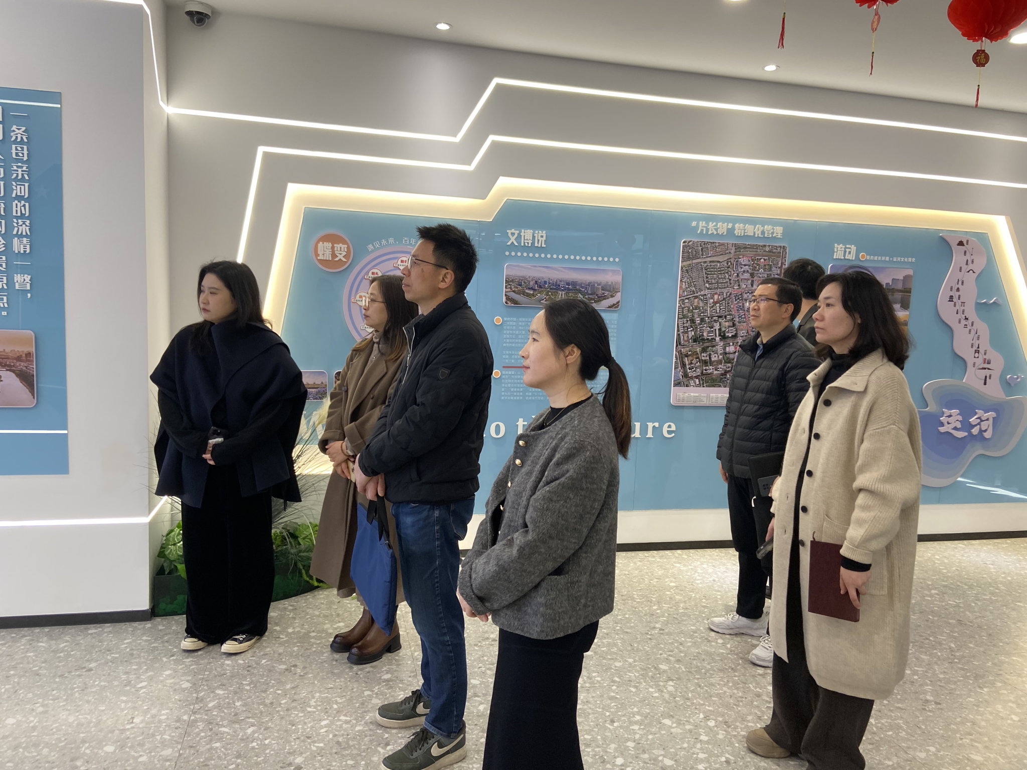 童勇军书记一行首先实地参观了文博社区党群服务中心,包含邻里中心、社区服务中心、文化礼堂、社区客厅、幸福学堂、24小时自助服务站等,并了解了未来社区的基本情况。在文博社区党总支书记徐红霞的引导下,童勇军书记一行通过未来之门参观了社区的未来展厅,观看了文博未来社区宣传片。在该展厅,文博社区以第一视角阐述了自己的前世今生、发展蝶变、主题特色、文化底蕴等内容,让大家对文博社区党群服务中心有了更深的了解。接着,到社区二楼的居家养老活动中心,徐红霞向大家介绍了幸福学堂、老年食堂、书画室、图书室、日托室、健身房、文化礼堂、舞蹈室、监控室等未来健康和治理场景中的符合辖区居民需求的具体功能室。一行人还乘坐社区微公交前往运河幼儿园、文博苑运河医站、智慧书房以及城南驿站,实地感受未来社区的完善的基础设施建设。