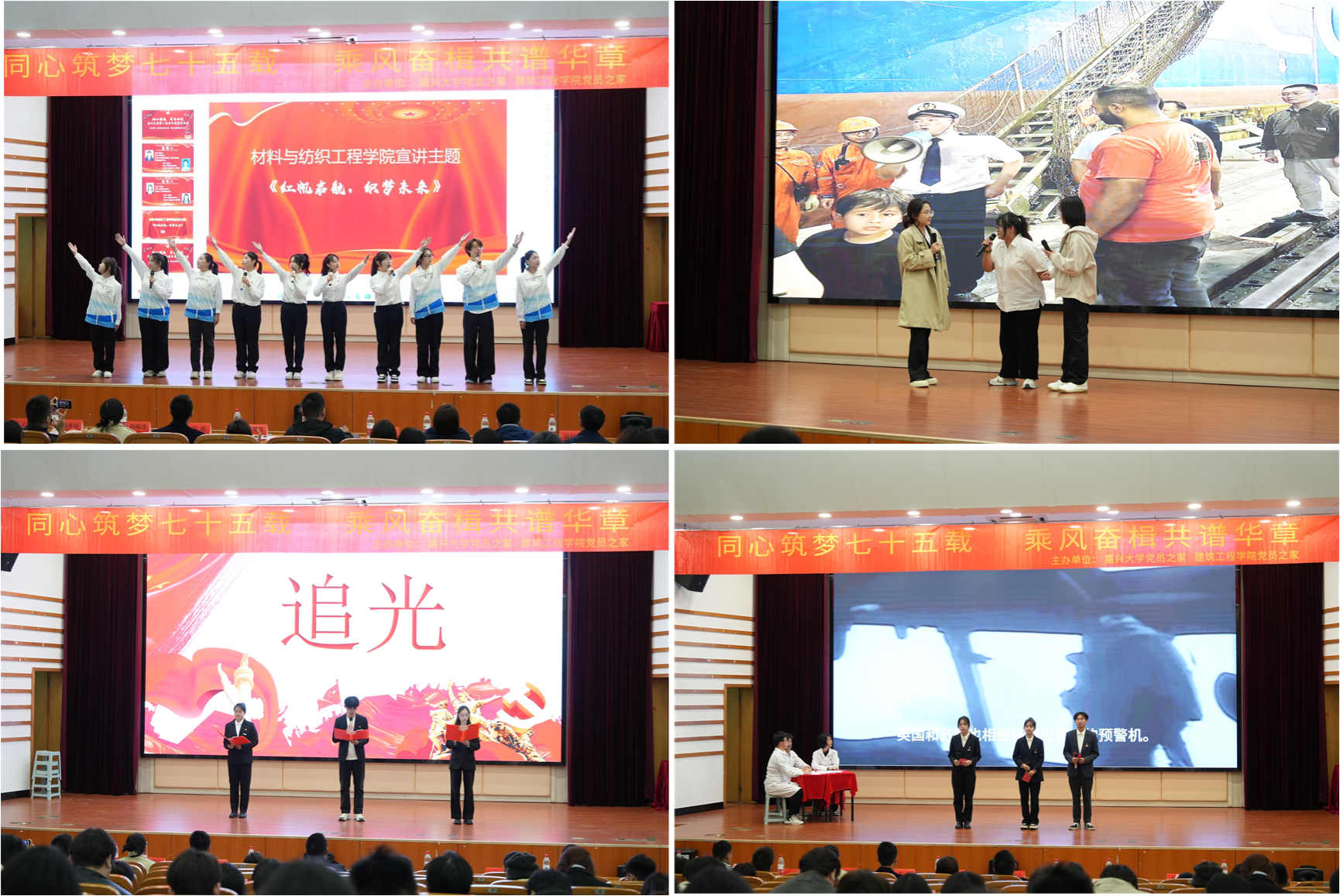 本届宣讲会以“同心筑梦七十五载,乘风奋楫共谱华章”为主题,各学院宣讲团队结合学院特色,以情景剧、辩论、演讲、朗诵等形式进行主题宣讲。通过此次宣讲,加强了学生党员的再教育,增强了学生党员的党性修养和组织观念,充分展现了当代大学生与祖国“同呼吸 共命运”的价值追求,引导广大青年坚定不移听党话、跟党走,争做有理想、敢担当、能吃苦、肯奋斗的新时代好青年。