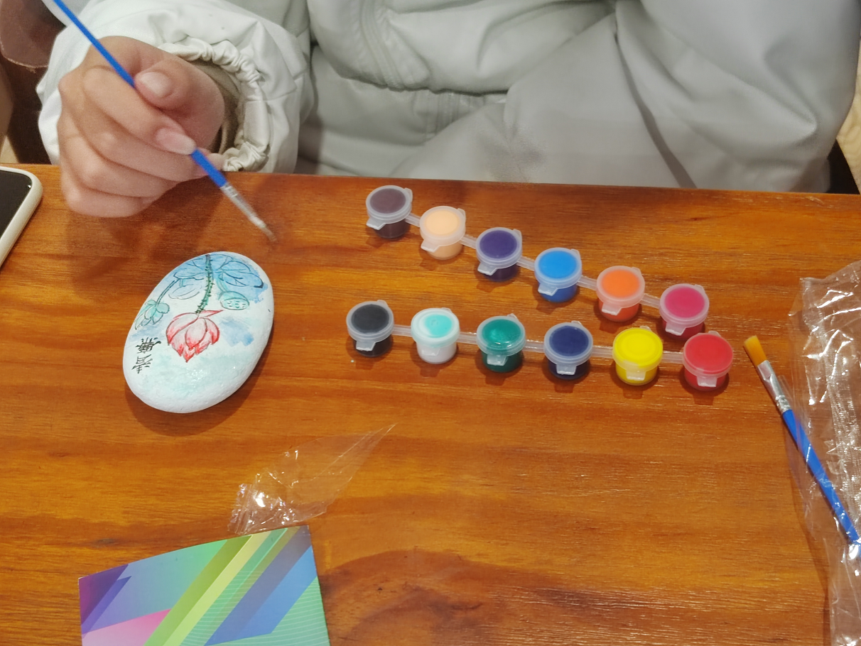 随后,大家纷纷拿起画笔,开始了石头画创作。学生们围绕廉洁主题,充分发挥想象力和创造力,有的描绘了莲花,寓意着“出淤泥而不染,濯清涟而不妖”的清正廉洁;有的描绘了翠竹,象征着“咬定青山不放松,立根原在破岩中”的坚韧不拔。在这段充满创意与艺术氛围的时光里,每个人都根据自己对廉洁文化的理解,将廉洁元素与个人的艺术表达相融合。创作完成后,大家在现场展示了自己的石头画,并分享了作品背后的廉洁寓意。每一幅作品都别具匠心,展示了年轻一代对廉洁文化的理解与传承。大家纷纷表示今后要以“石”为证,下定决心要认认真真学习,踏踏实实做事,清清白白做人。