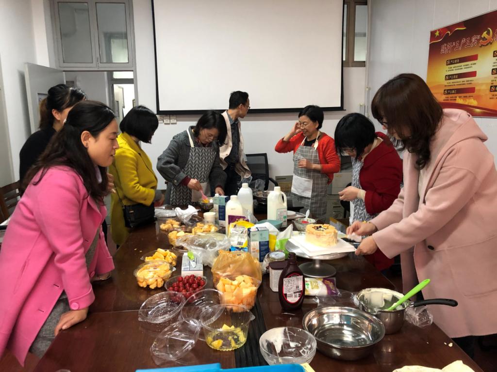 3月28日星期四中午12:30开始,麻豆tv 204会议室就散发出一阵阵蛋糕和水果的芬芳,女教师们围着围裙进进出出,进到室内一看,十多位老师一起动手,正在进行蛋糕的制作和烘焙,利用此次难得的机会,几位教师中的“烘焙发烧友”手把手为同事作着演示,当每一个成品出炉时,必定会有成功的喜悦映在脸上,麻豆tv 分工会为了丰富教职工的校园文化生活,增强凝聚力释放女教师工作压力特别举办了这次学做生日蛋糕的女工活动,在活动过程中男教师们也尝到了女同胞们的手艺成果。(范永刚 供稿;王辉 审稿)