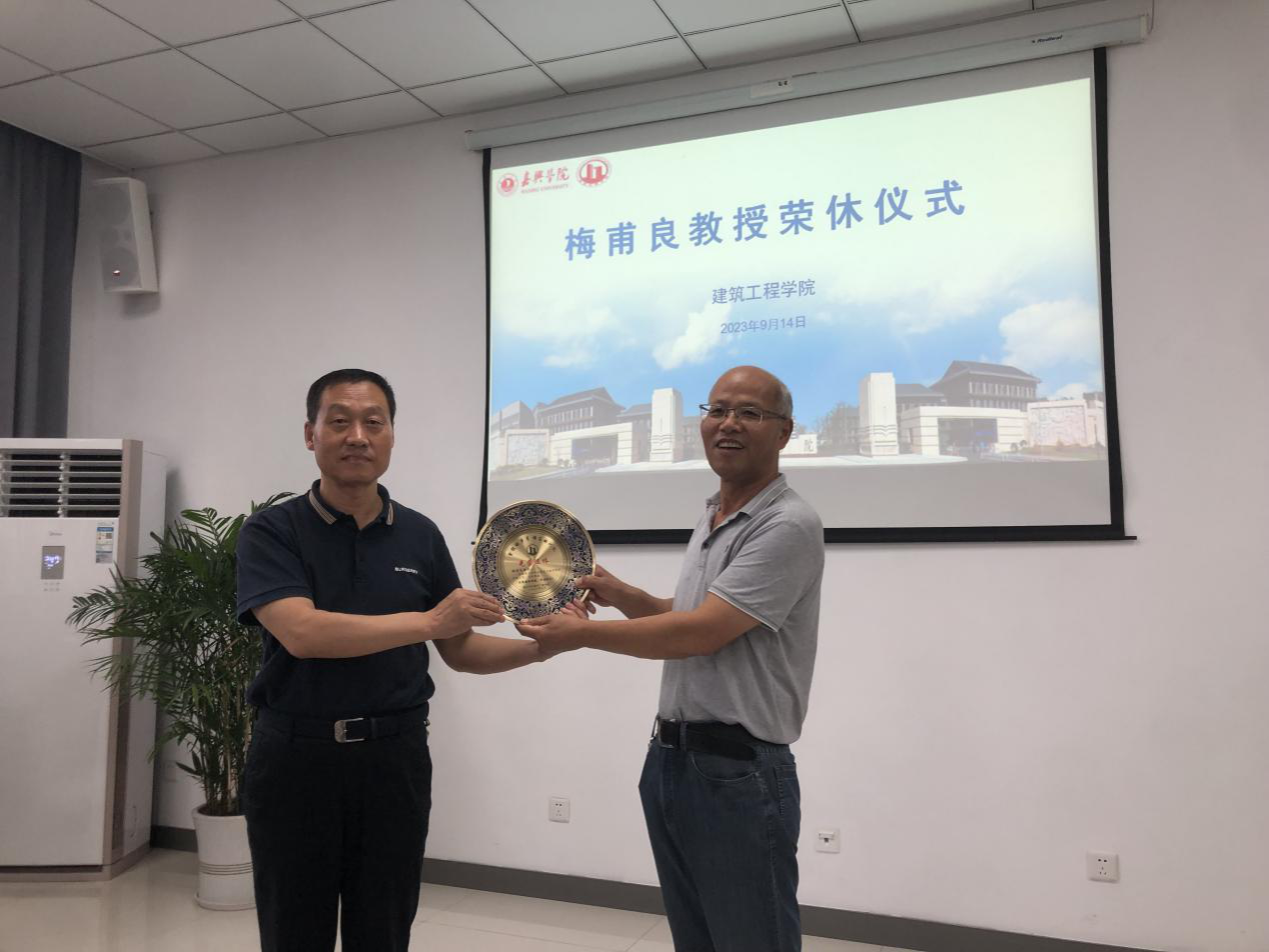 在荣休仪式上,姚民乐书记代表学院感谢梅教授多年来对学院工作的支持与无私奉献,并祝愿梅教授的退休生活如他的歌声一样洋溢着快乐。王恩茂院长为梅教授颁发荣休纪念品。参加荣休仪式的老师们回忆往事,在愉悦的气氛中对梅教授表达了不舍之情,欢迎梅教授常回建工学院!
