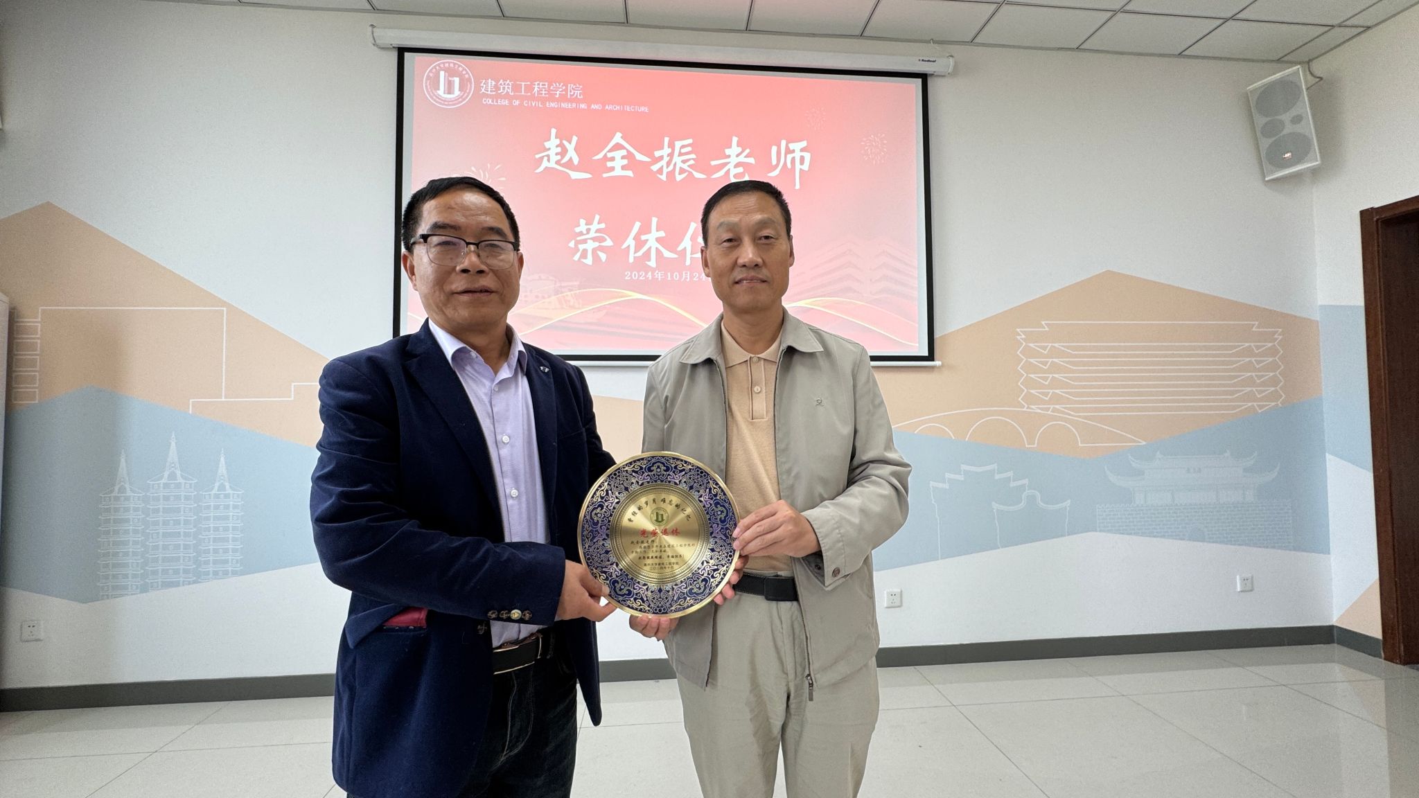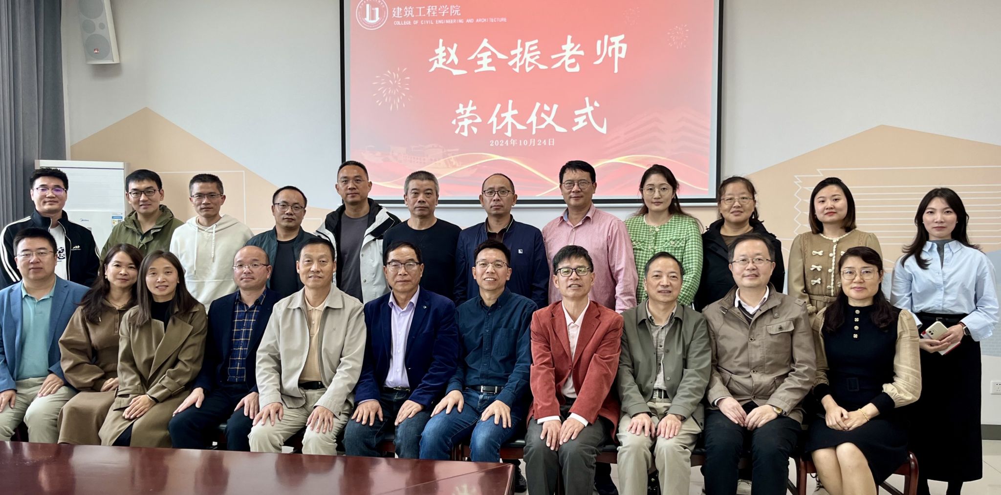 举行赵全振老师荣休仪式。学院党政班子成员、土木工程系全体教师及其他系部分教师代表参与活动。仪式由学院党委书记童勇军主持。