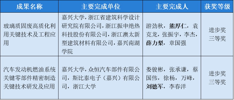 作为第一完成单位牵头申报的“玻璃质固废高质化利用关键技术及工程应用”项目,荣获浙江省科学技术进步奖三等奖。