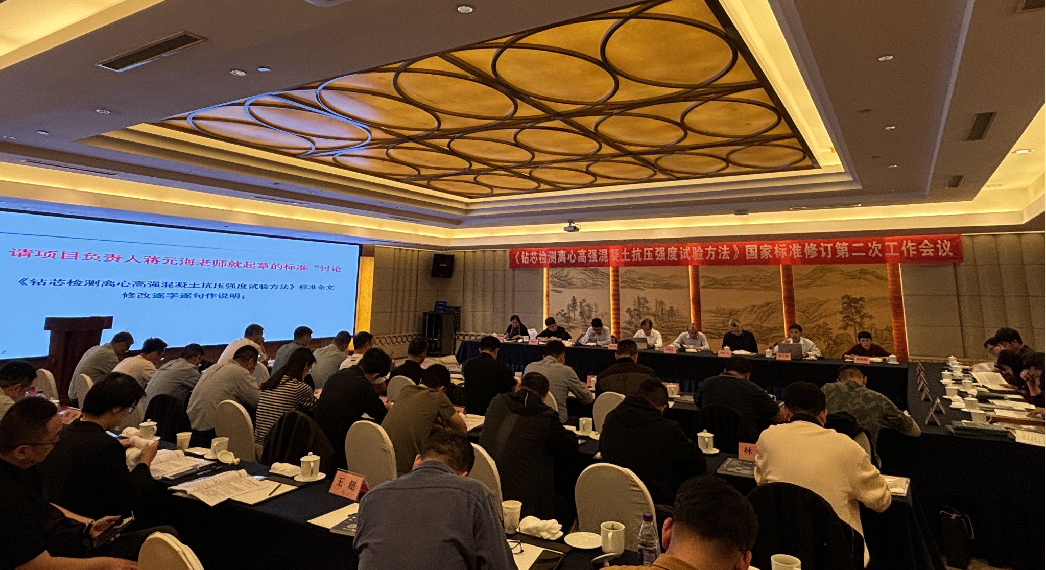 蒋元海教授作为项目负责人,详细汇报了标准修订调研、讨论稿起草以及会议筹备等情况。随后,与会代表们对《钻芯检测离心高强混凝土抗压强度试验方法》讨论稿逐字逐句展开热烈交流,踊跃发言,提出了一系列具有建设性的建议。