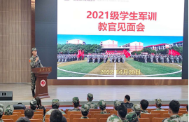 2022年6月20日下午,建工学院在图书馆学术报告厅召开2021级学生军训教官见面会。学院党委副书记杨智慧出席会议并讲话。军训教官,指导员,学院辅导员和全体参训学生参加会议。