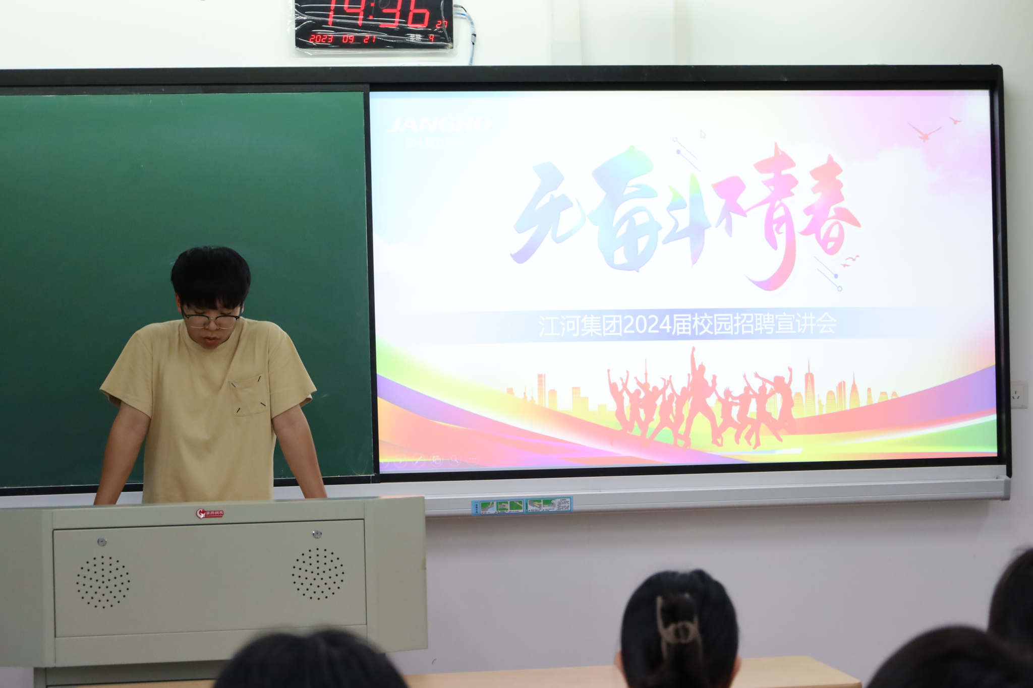 9月21日下午,麻豆tv 在兴德楼南楼210开展江河集团上海有限公司就业宣讲会,麻豆tv 2024届毕业生参加活动。