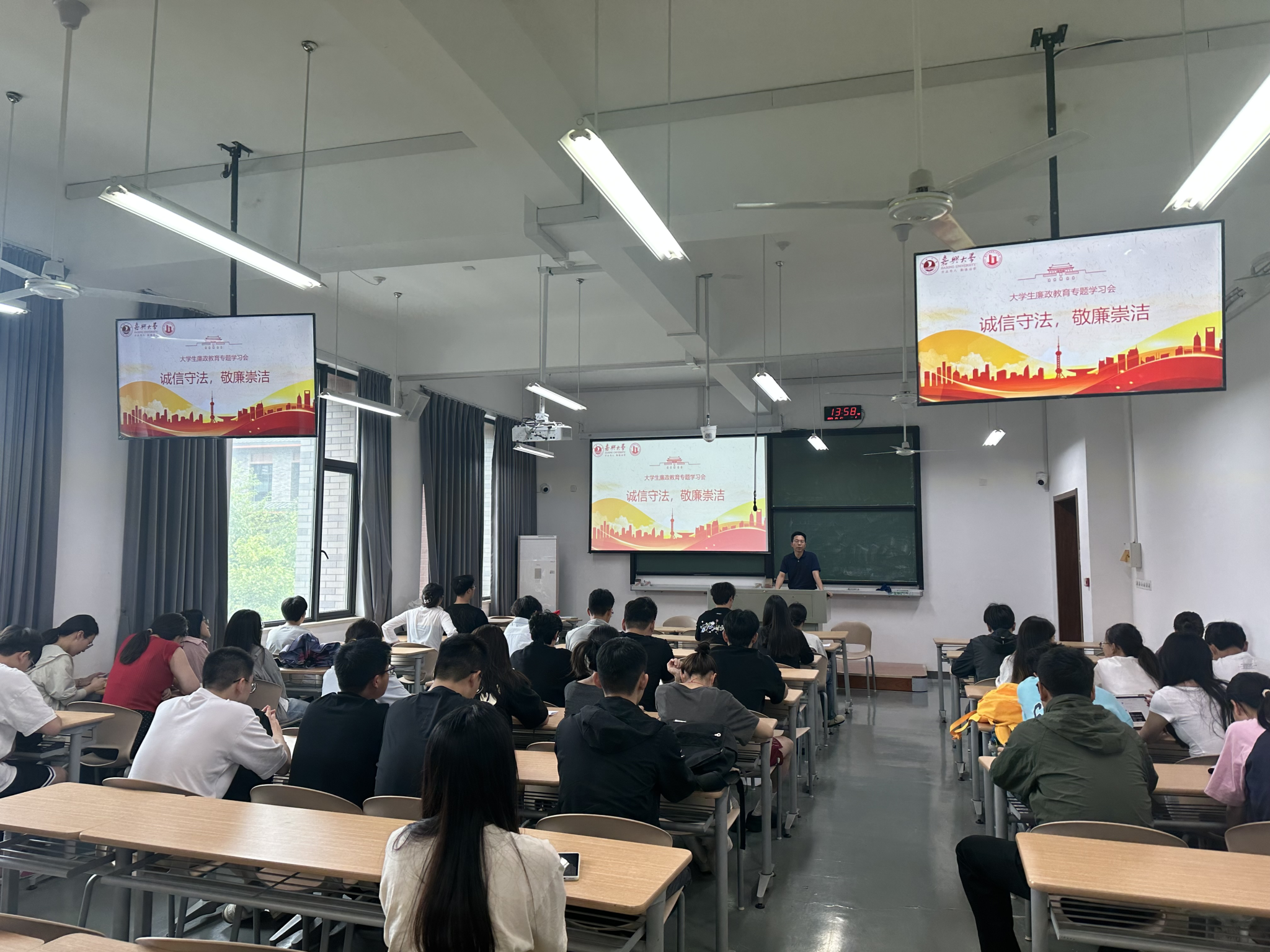 在5月27日举办2025届毕业生党员廉洁教育专题党课。学院党委书记童勇军以“诚信守法,敬廉崇洁”为题,为毕业生党员讲授了一堂主题鲜明、内涵深刻的廉洁党课。