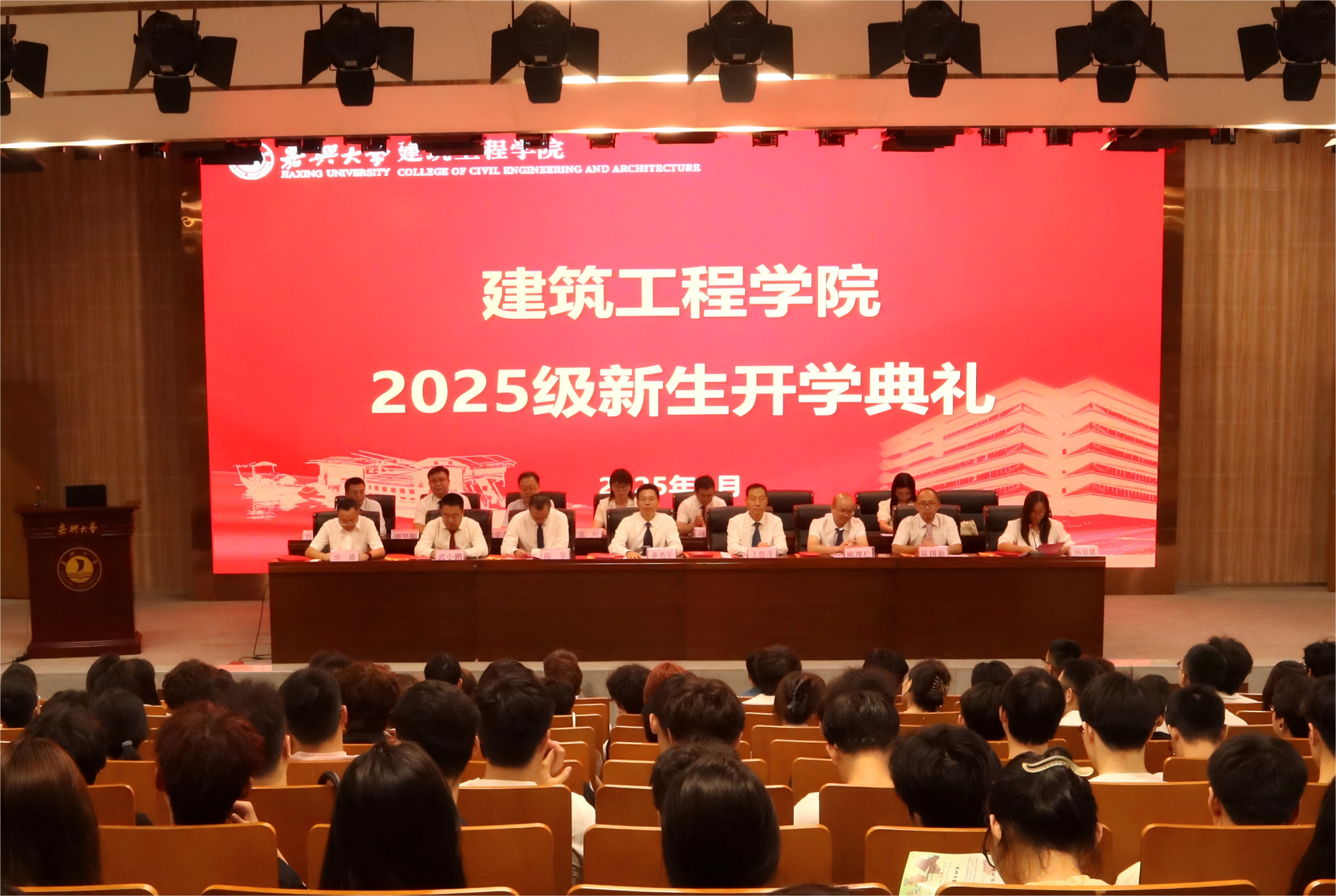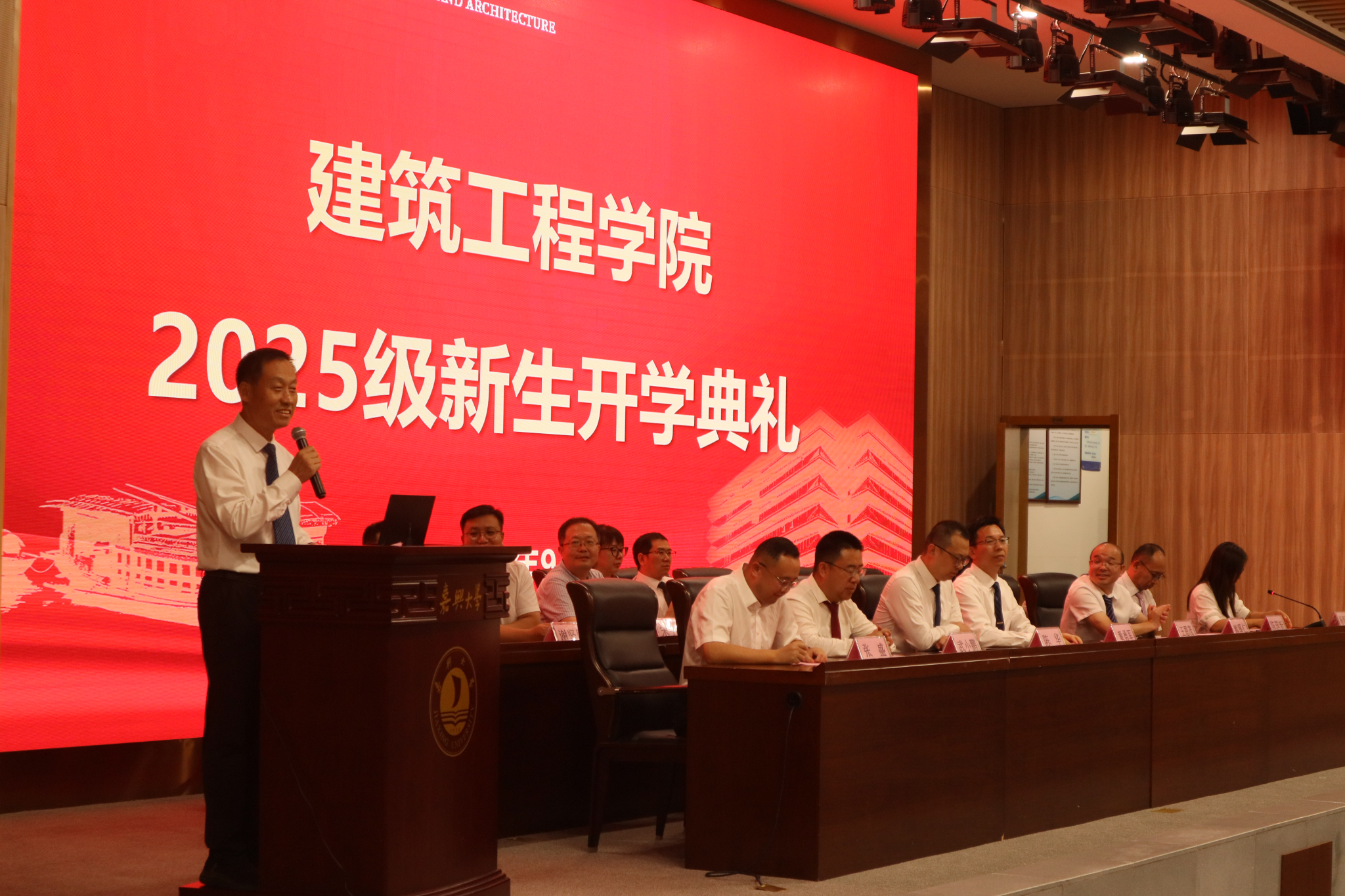 典礼的最后,院长王恩茂向新生们提出了三点殷切希望:一是勤学建基,成为“好房子建设”的卓越践行者,以扎实的专业知识筑就安全、绿色、智慧的居住空间;二是勇于探索,成为“智能建造”的先锋引领者,主动拥抱新技术、新材料、新工艺;三是笃行坚毅,担当“城市更新”的忠诚守卫者,积极投身于老旧小区改造、历史街区保护等工程。他勉励新生们怀揣着“知识报国、专业报‘嘉’”的伟大梦想,成长为有温度、有高度、有担当的“时代建造者”。