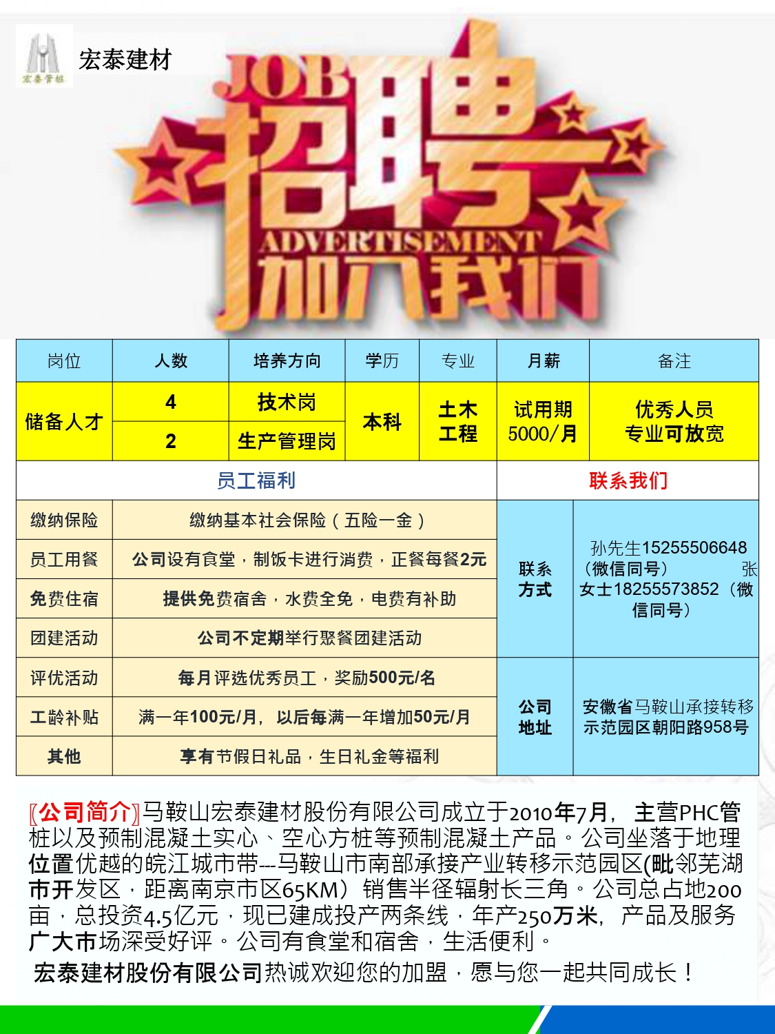 马鞍山宏泰建材招聘